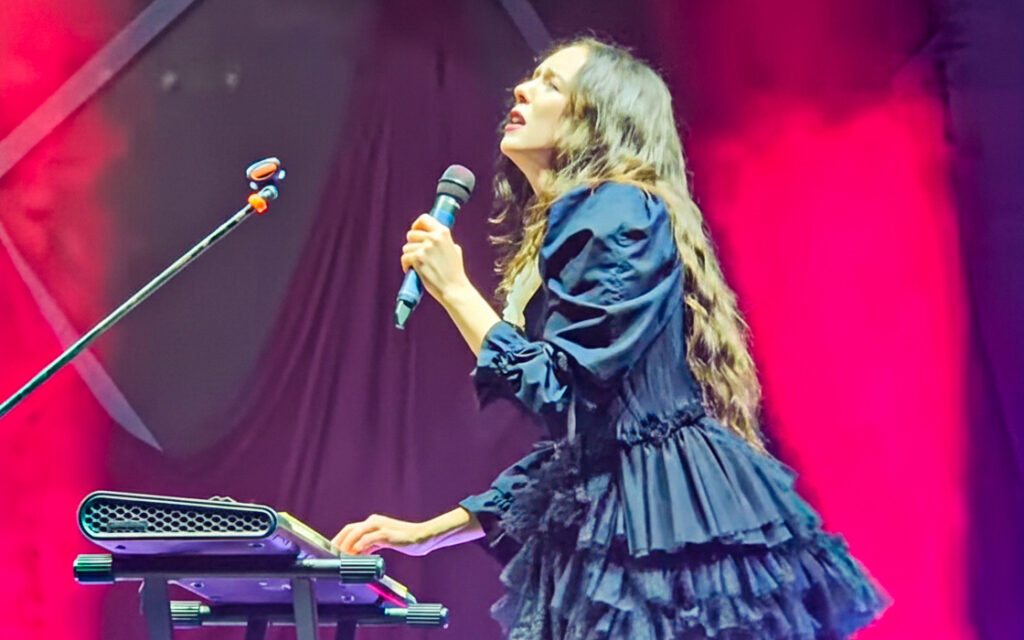 Allie X no palco do Cine Joia, durante a performance de “Black Eye”